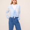 KITRI Women’s Dionne Lilac Stripe Crochet Knit Cardigan | Lilac Stripe