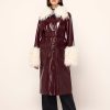 Skip the cloakroom. Brogan is an oversized, double-breasted coat in high-shine vinyl with an ’80s-inspired statement shoulder and peaked lapel. Her bold silhouette is tempered by a tonal placement floral embroidery. Wear with co-ordinating Carolyn Black Embroidered Vinyl Mini Dress for a full glossy-chic look.