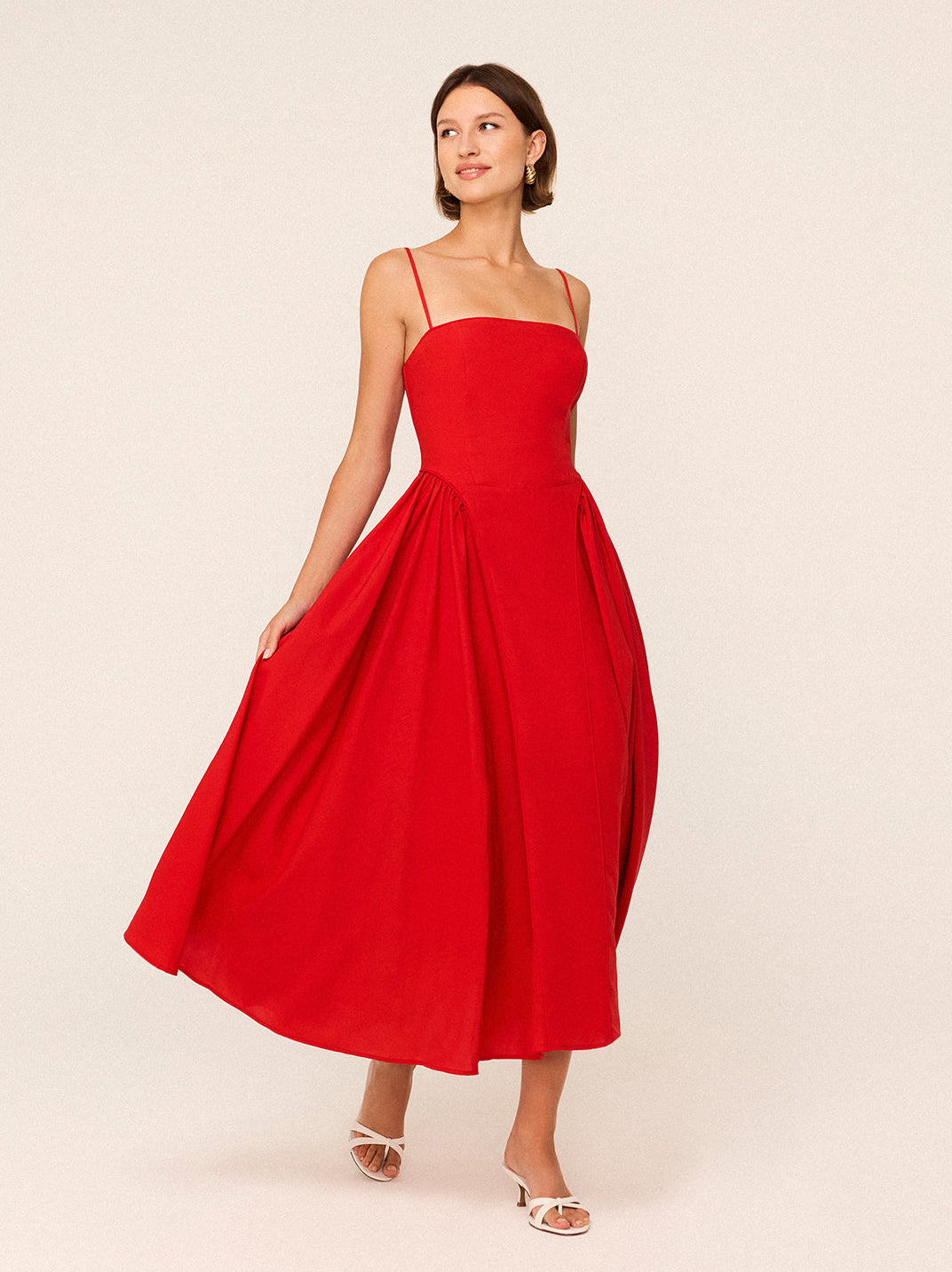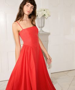 Alberta is an effortlessly elegant maxi dress designed to turn heads. Crafted from a breathable Tencel blend with a touch of hemp for a soft, fluid drape, this dress blends structure with movement. The fitted bodice creates a flattering silhouette, while self-fabric piping at the neckline and panelled seams at the skirt add subtle yet refined detail. A full, voluminous skirt brings drama and romance, and the shirred back ensures all-day comfort without compromising on style.
