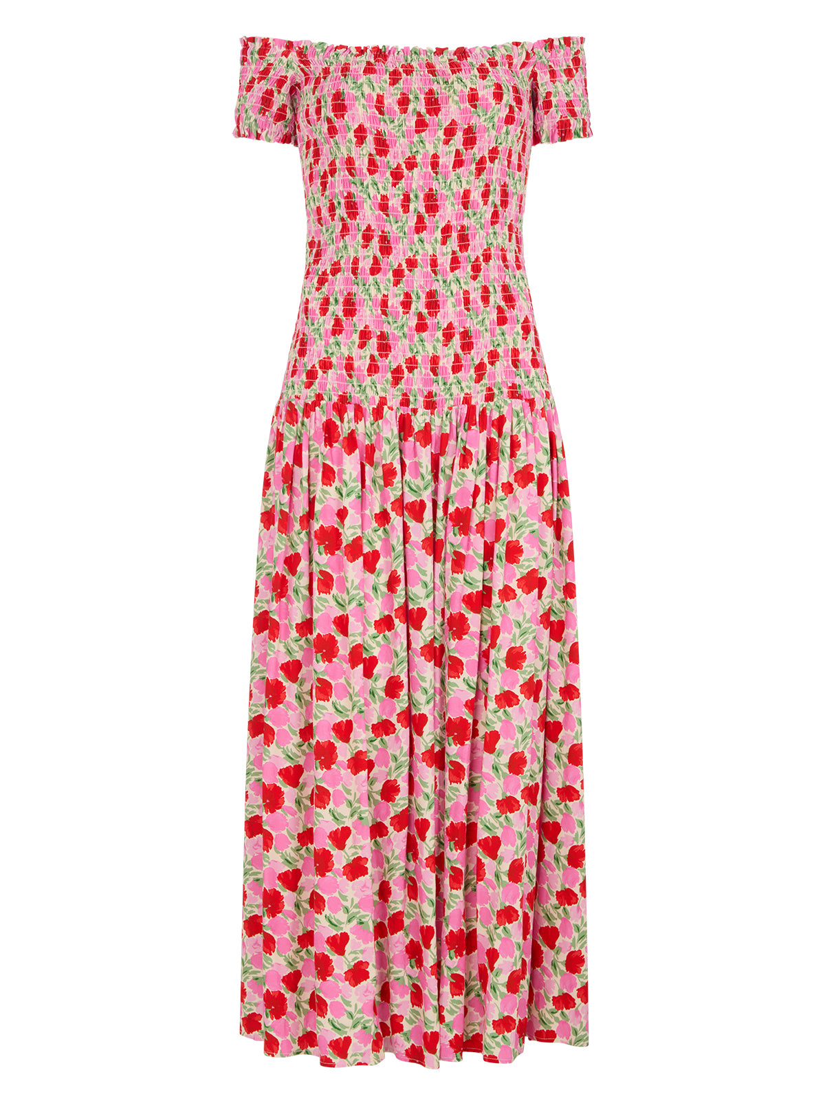 Effortlessly romantic, the Alma Dress is your go-to for sun-drenched days and balmy evenings. Designed with an off-shoulder neckline and a shirred bodice, this maxi dress offers a flattering, comfortable fit that hugs in all the right places. The delicate frilled sleeves add a feminine touch, while the lightweight viscose crepe fabric ensures movement and breathability. Pair with strappy sandals for a laid-back daytime look or elevate with statement earrings and heels for the perfect summer soirée ensemble.