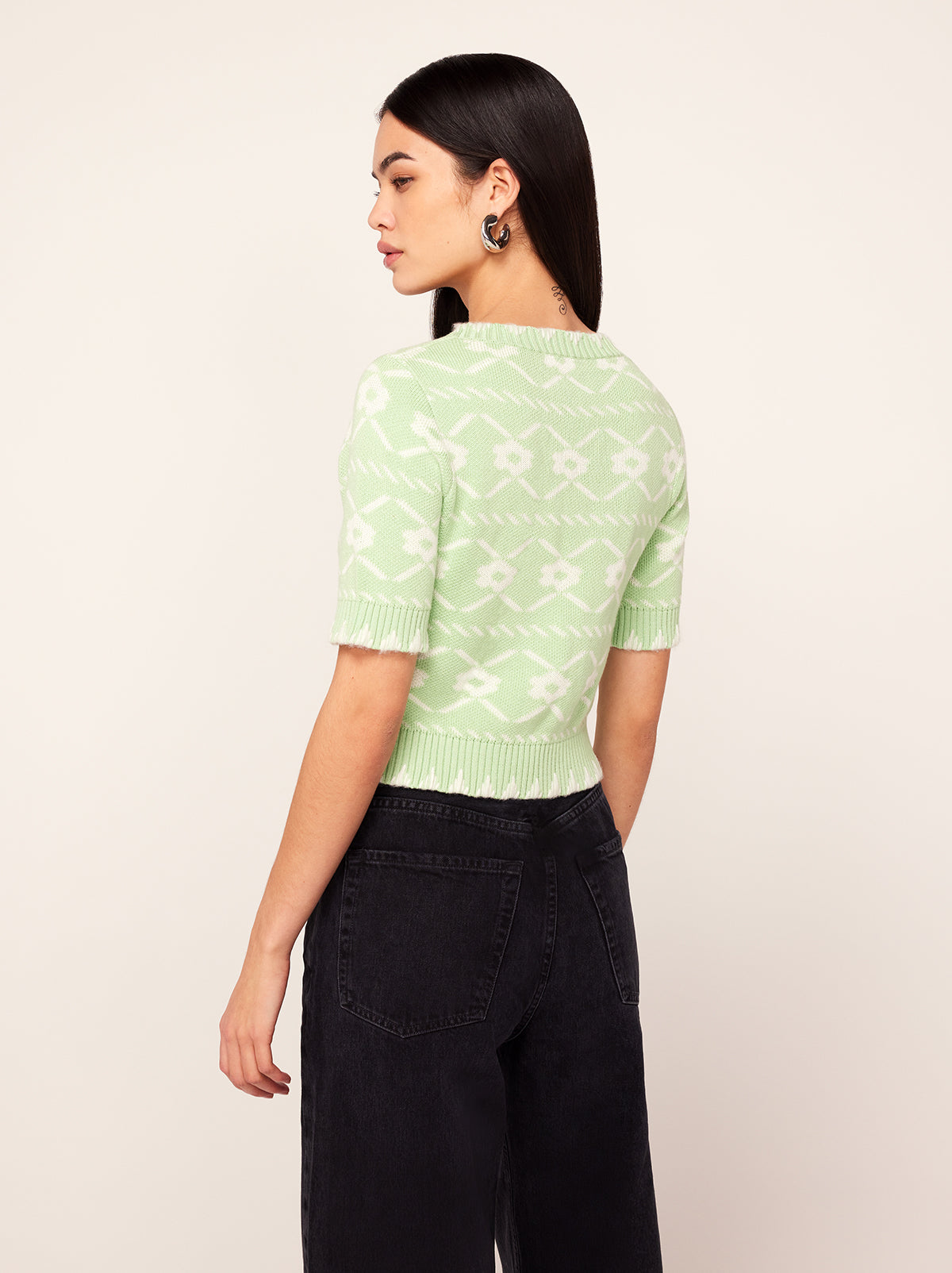 The cardigan of your springtime dreams. Dora is a scoop neck, cotton blend knit in the perfect cropped length to skim the top of your high-waisted jeans. Her mood-boosting floral intarsia is the perfect pick-me-up and her cool pistachio colour will look great with your favourite denim.