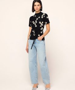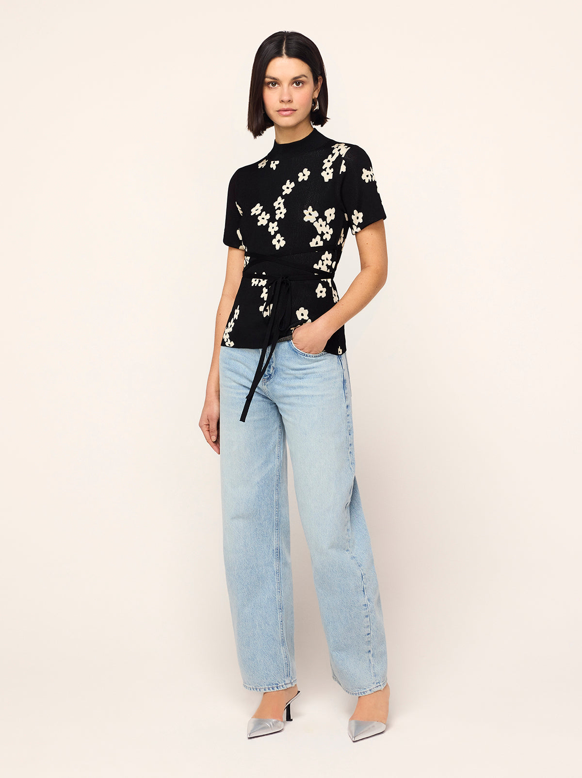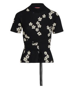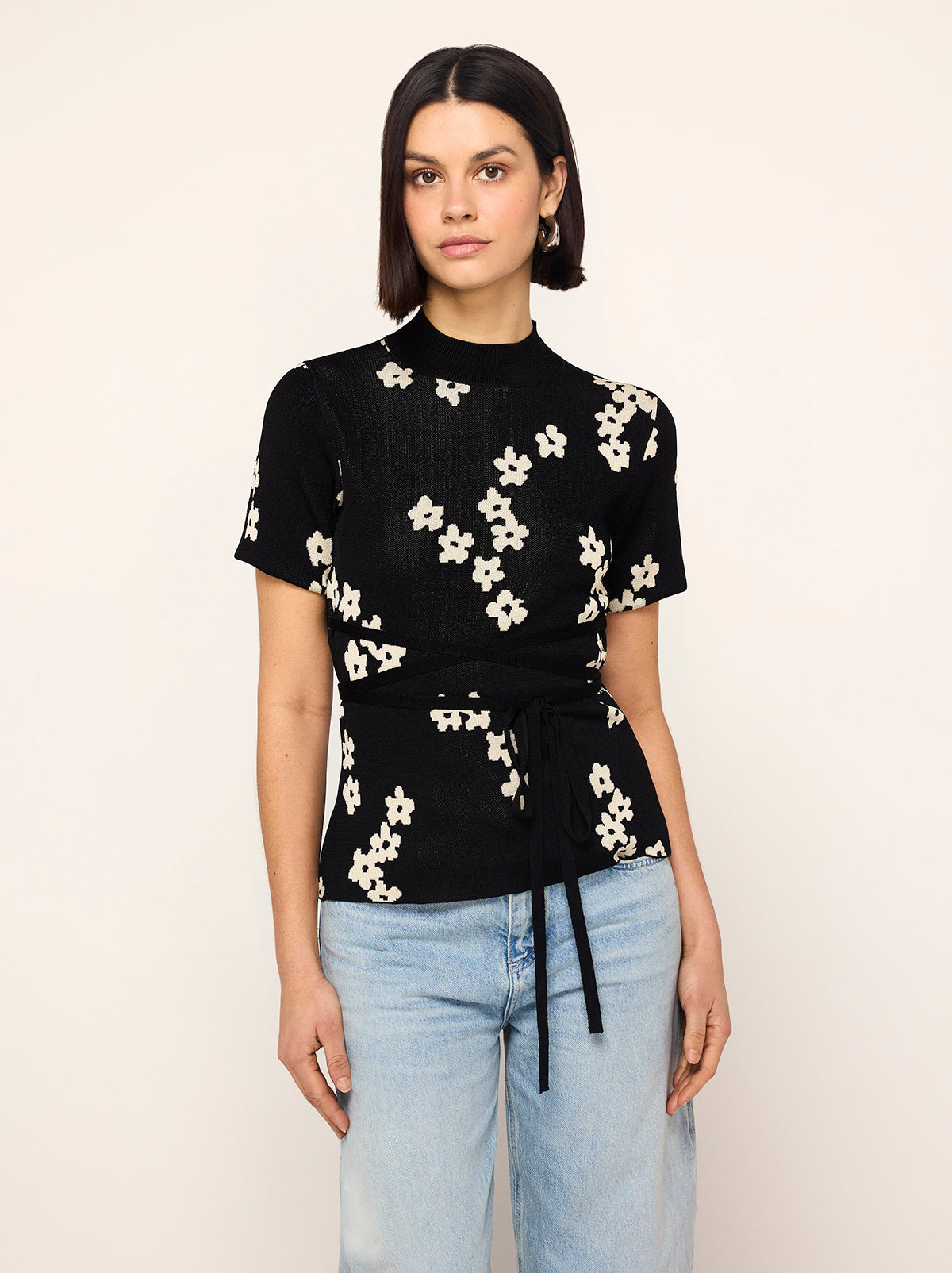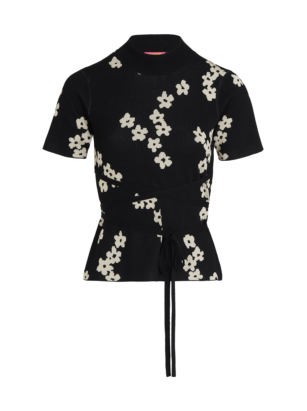 For post-barré activities. Gina is a high mock-neck, short-sleeve top crafted from flattering and figure-hugging jacquard knit with a compact finish. Her ballet-inspired wrap-around tie waist detail flatters your figure and lets you live out your ballerina fantasy. Pair with your favourite denim for an easy dinner-date look.