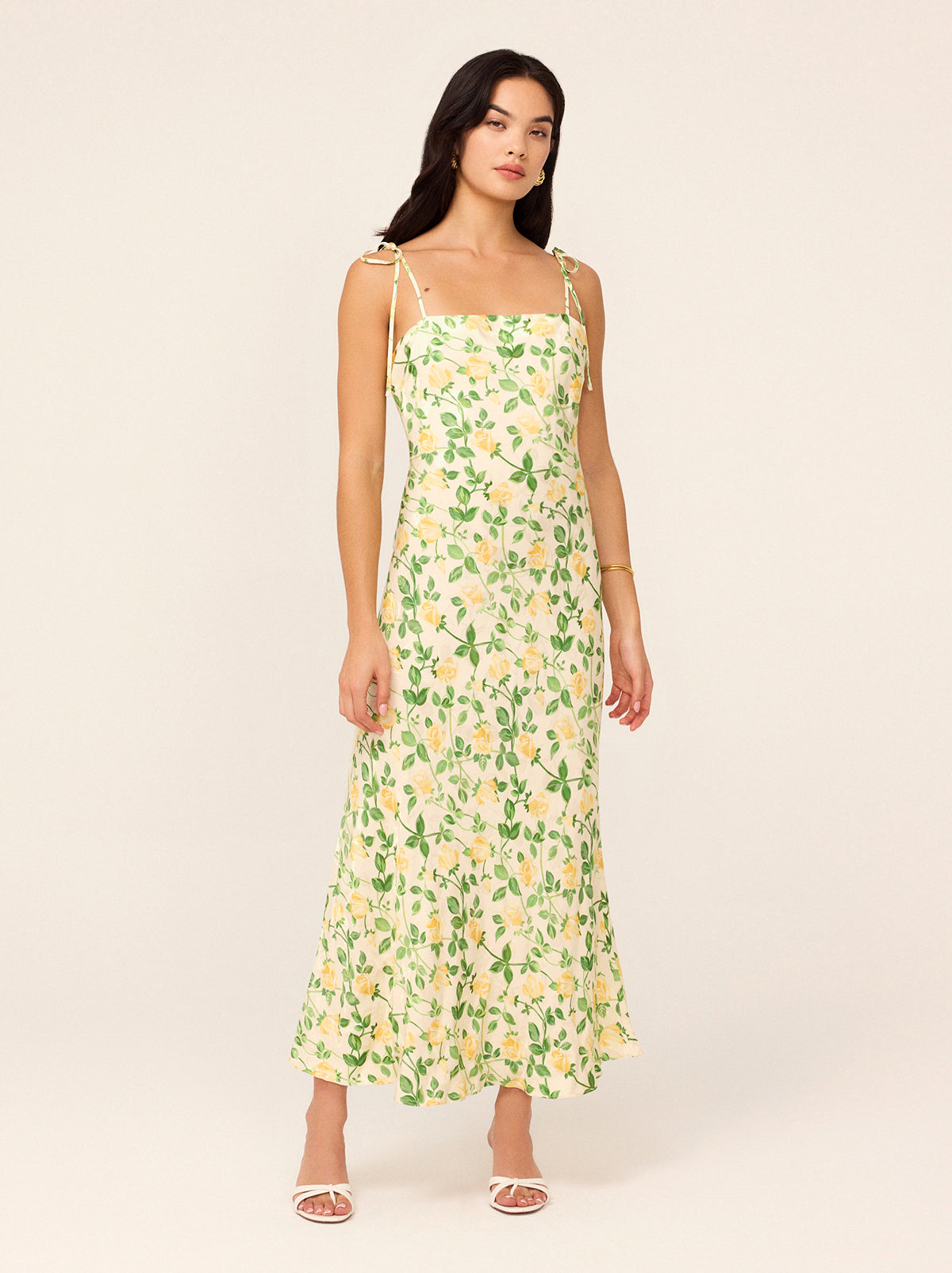 Effortless elegance, wrapped up in a dress. The Giulia Maxi Dress is designed in a bias-cut silhouette, draping beautifully to create a flattering, fluid fit. The straight neckline and delicate tie shoulder straps add a playful, feminine touch, while the printed viscose jacquard brings just the right amount of texture and charm.