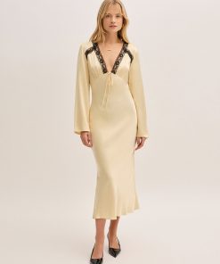 Velvet, we love you. Taking inspiration from our best-selling Valentina, we’ve kept her Cheongsam-inspired high neckline with tie detail and mini silhouette with split skirt, and added short puff sleeves for a playful take on the ever-so-flattering silhouette.