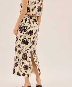The kind of skirt that turns errands into occasions. The Laurel skirt features KITRI’s exclusive hand-painted rose print in a soft, monochrome palette. Cut in a flattering column silhouette, it’s designed to skim the body and finish with a subtle back split for ease of movement.