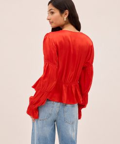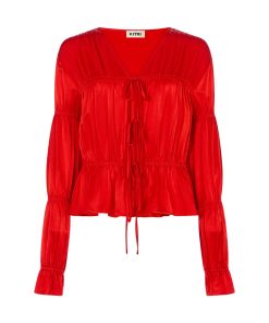Vintage-inspired with a modern edge, the Maia Top in brilliant red is here to elevate your wardrobe. Designed in luxurious satin with a flattering gathered bodice and sleeves, this long-sleeve blouse brings effortless femininity to any look. The tie fastening with button details at the front ensures both style and function.