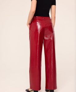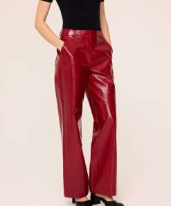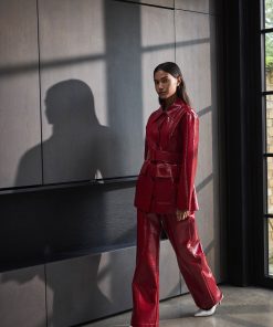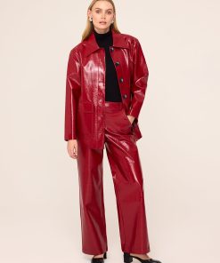 Fancy pants. The Remi Red Vinyl Trousers are your new go-to for making a bold style statement. With their mid-rise, looser fit, these trousers offer effortless cool without trying too hard. The striking red vinyl finish gives them a standout look, perfect for pairing with the matching Beatrix Red Vinyl Jacket for a full 70s-inspired ensemble. Alternatively, team them with a crisp white shirt and heels for a chic, Saturday night look. These trousers are the ideal way to bring some fun and flair to your wardrobe.