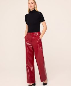Fancy pants. The Remi Red Vinyl Trousers are your new go-to for making a bold style statement. With their mid-rise, looser fit, these trousers offer effortless cool without trying too hard. The striking red vinyl finish gives them a standout look, perfect for pairing with the matching Beatrix Red Vinyl Jacket for a full 70s-inspired ensemble. Alternatively, team them with a crisp white shirt and heels for a chic, Saturday night look. These trousers are the ideal way to bring some fun and flair to your wardrobe.