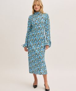The ultimate dress to see you from winter to spring, the Rory Blue Floral Print Midi Dress features a gathered high neckline and long slim sleeves finished with frilled cuffs, designed to peek through when layered under your favourite knit. She’s the kind of dress you can rely on to take you from day to night with ease, offering timeless elegance for any occasion.