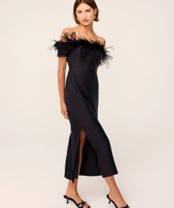 Effortlessly elegant with a glamorous twist, the Vivien Black Feather Dress is a show-stopper for any occasion. Crafted from premium black moir fabric, its subtle sheen and unique rippling effect create a sense of understated luxury. The strapless, fitted bodice hugs your figure in all the right places, while the feather detailing along the top adds a dramatic flair that’s perfect for a night to remember. Whether you’re heading to a formal event or a chic evening out, Vivien is your go-to for a look that exudes confidence and sophistication.
